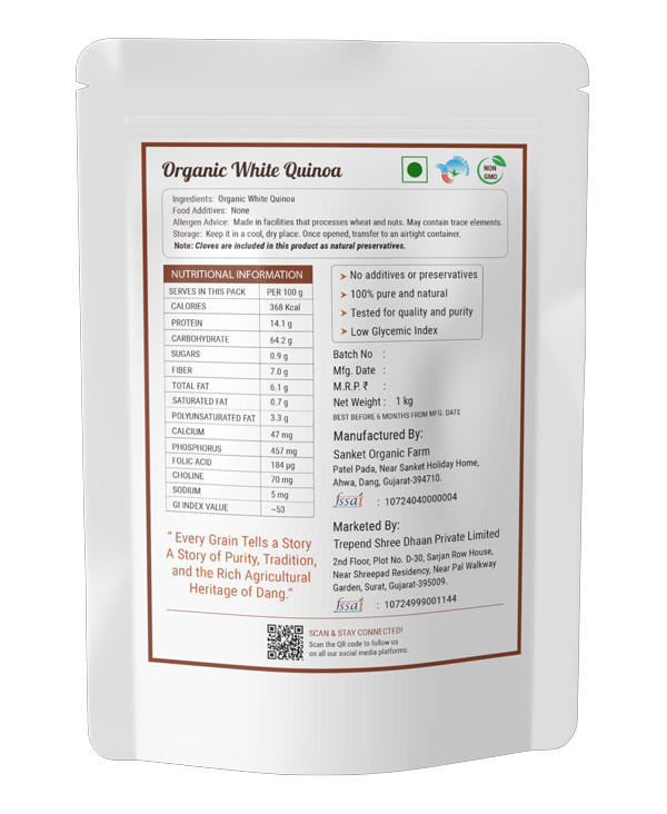 MilHut Organic White Quinoa is your entry into complete plant-based nutrition — a gluten-free supergrain that delivers high protein, essential amino acids, and gut-friendly fiber in every spoon.